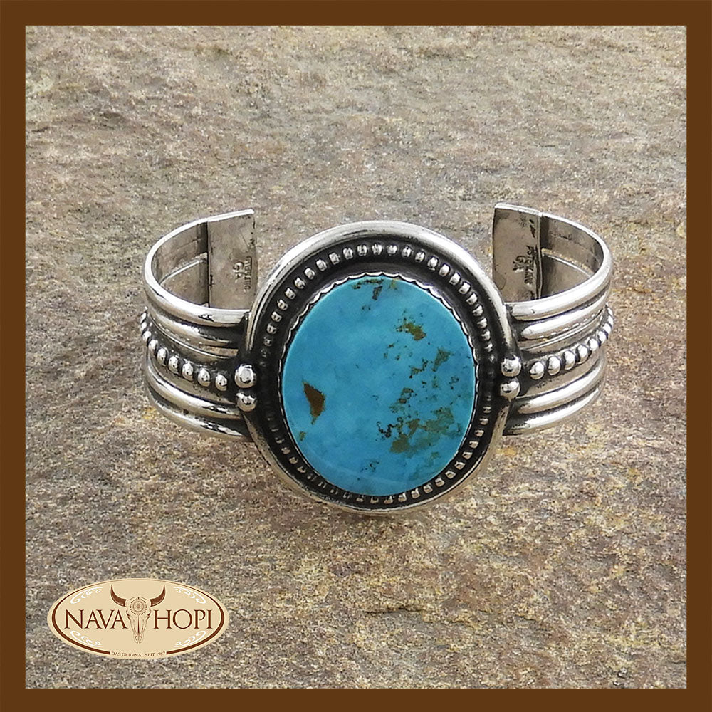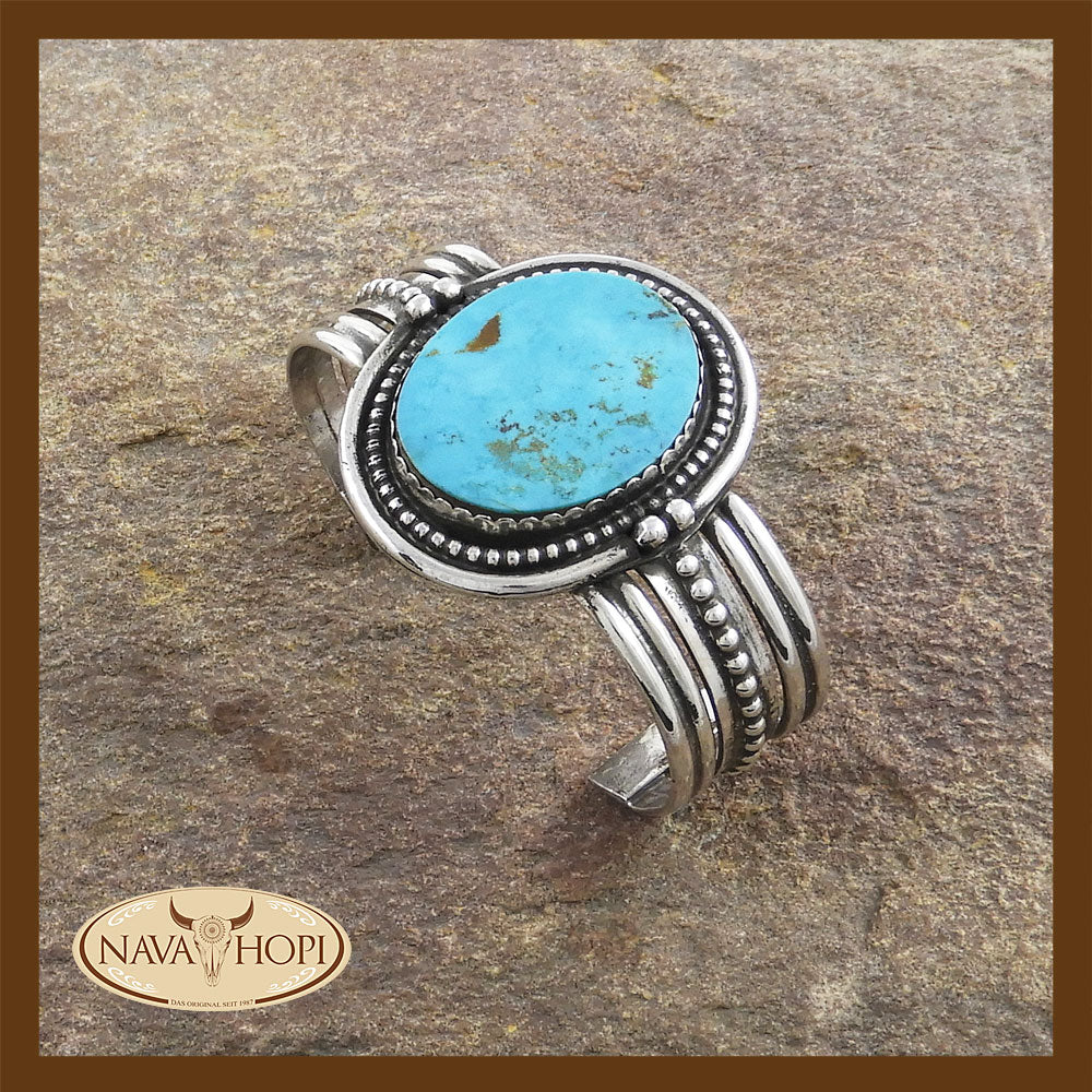 Navajo Damenarmreif, Sterling Silber mit sehr schönem Türkis Stein, Stempelung GA, Breite ca. 44mm, Durchmesser ca. 64mm, Gesamtumfang ca. 16,5cm