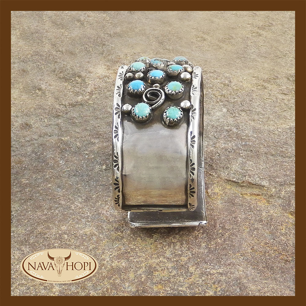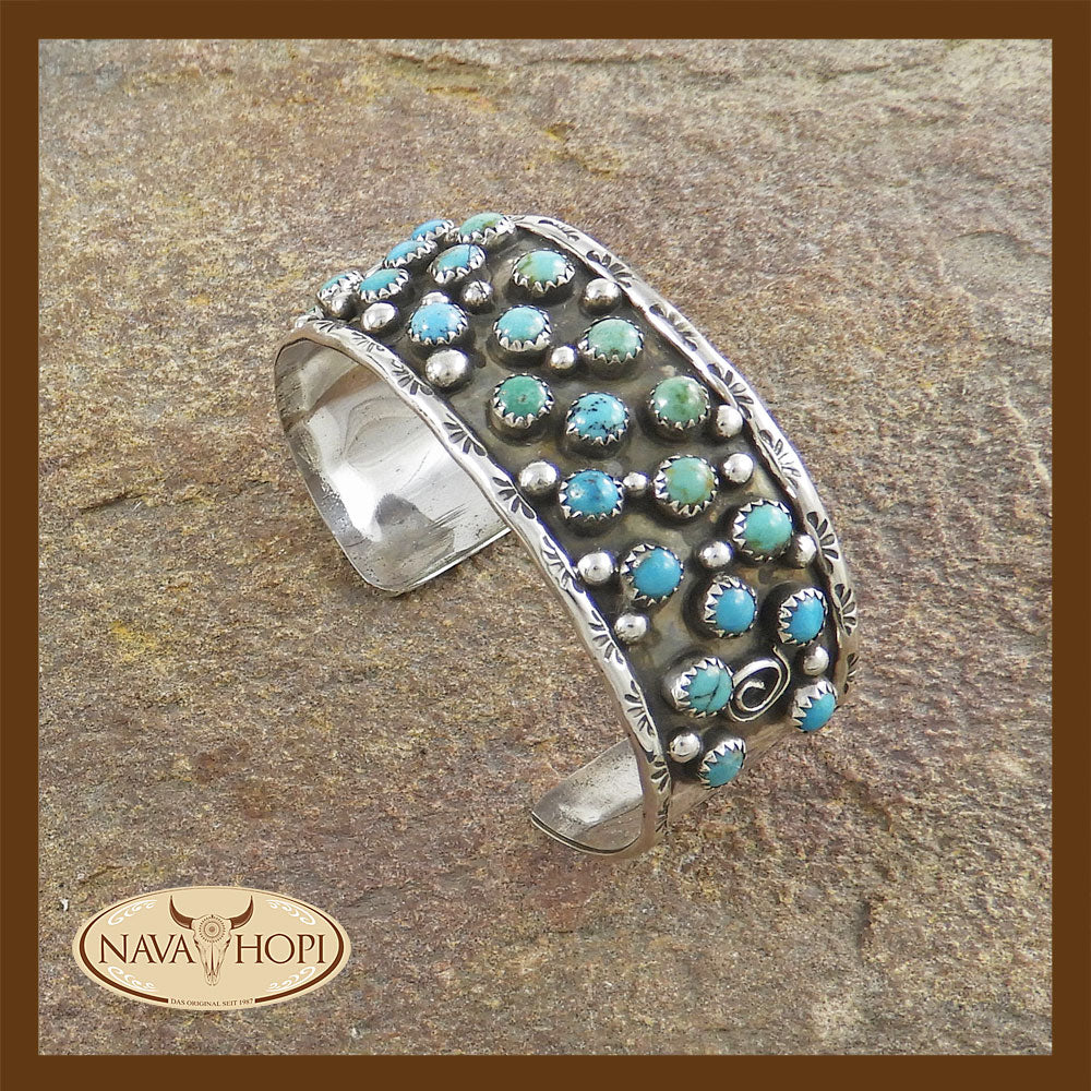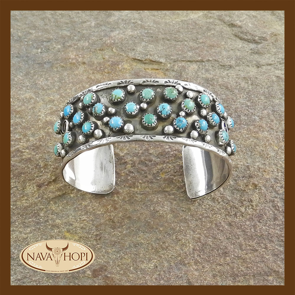 Navajo Damenarmreif, Sterling Silber mit 24 verschiedenen echten Türkis Steinen, Breite ca. 25mm, Durchmesser ca. 63mm, Gesamtumfang ca. 18mm