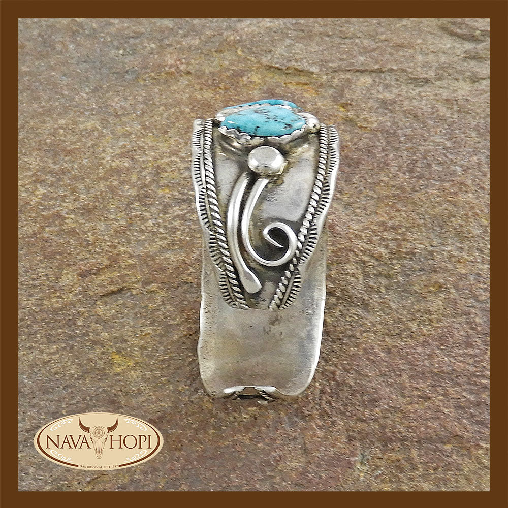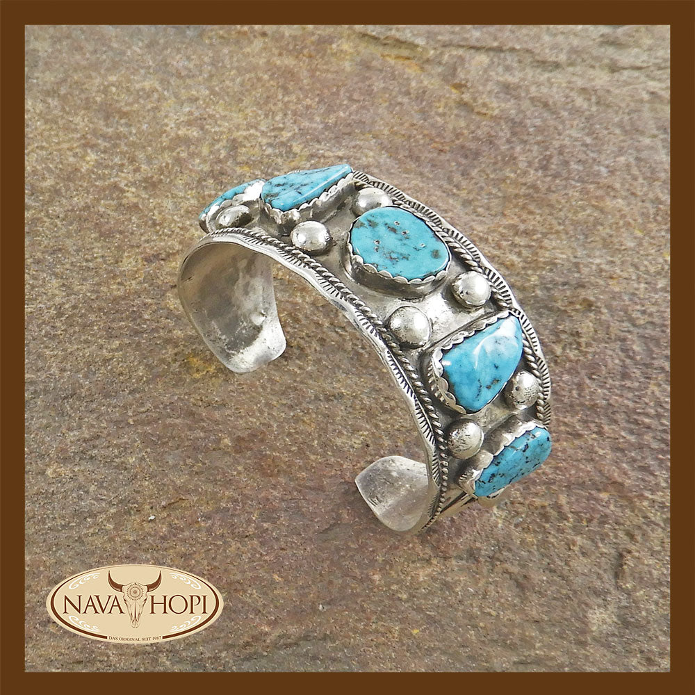 Navajo Herrenarmreif Türkis, Sterling Silber mit fünf echten Türkis Steinen, Breite ca. 29mm, Durchmesser ca. 64mm, Gesamtumfang ca. 18cm