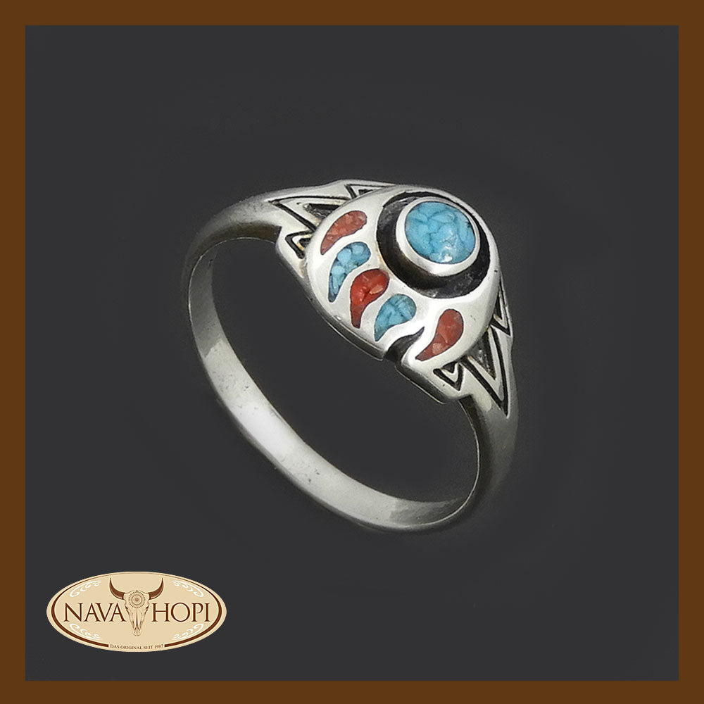 Ring Bärentatze, Sterling Silber mit Chipinlay Türkis und Koralle, Breite ca. 11mm