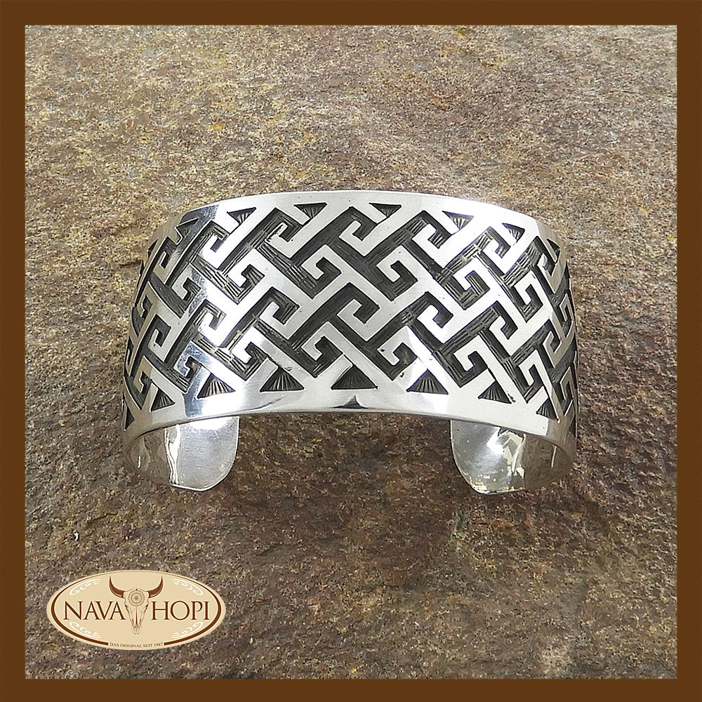 Navajo Armreif, Sterling Silber, Breite ca. 34mm, Durchmesser ca. 69mm, Gesamtumfang ca. 19cm