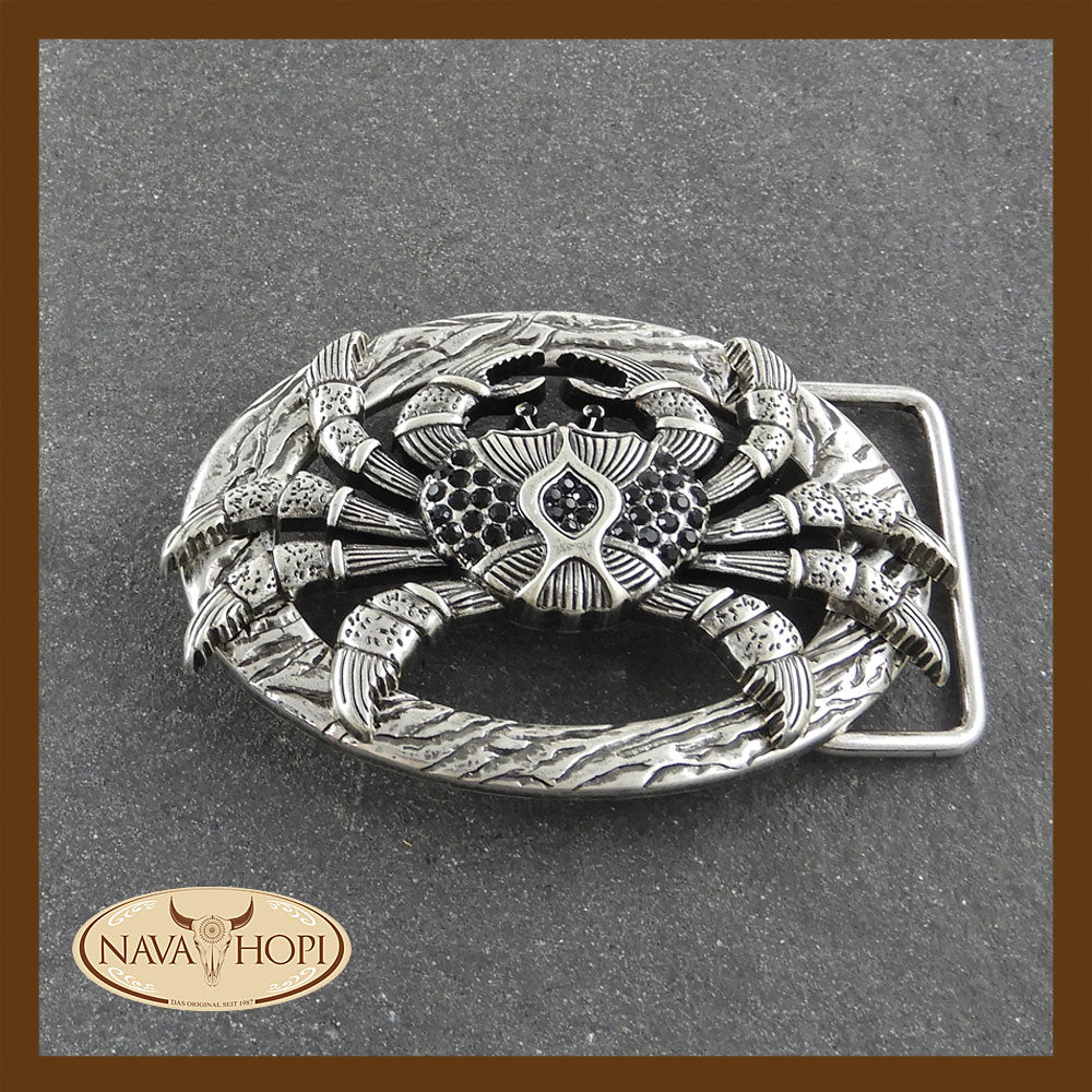 Gürtelschnalle Krebs, Größe 8,5 x 6,0cm, Aluminiumguss mit schwarzen Zrikonia Steinen, Gürtelaufnahme 4cm