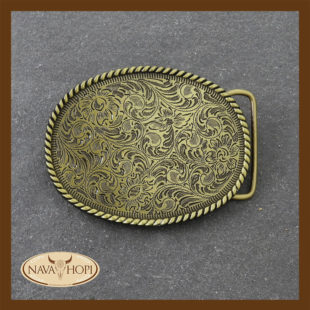 Gürtelschnalle Ornament, Aluminiumguss,Goldfarben, Größe ca. 8,3x6,5 cm, Gürtelaufnahme 4cm