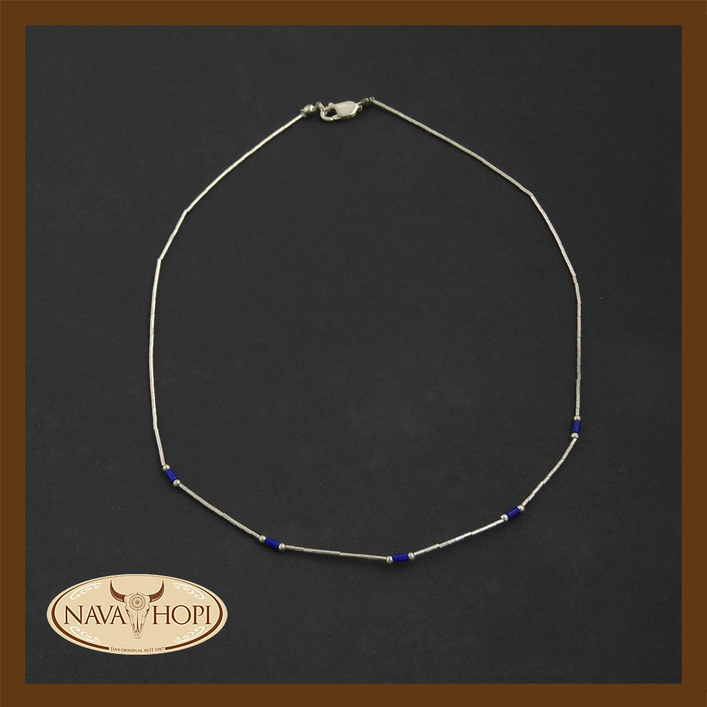 Kette mit Sterling Silber und blauen Röhrchen und Kugeln, Länge ca. 41cm