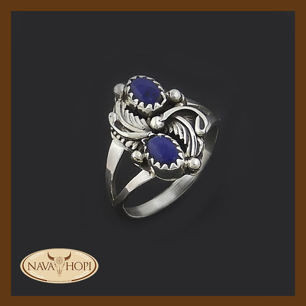 Navajo Damenring, Sterling Silber mit zwei Lapislazuli Steinen, Breite ca. 18mm