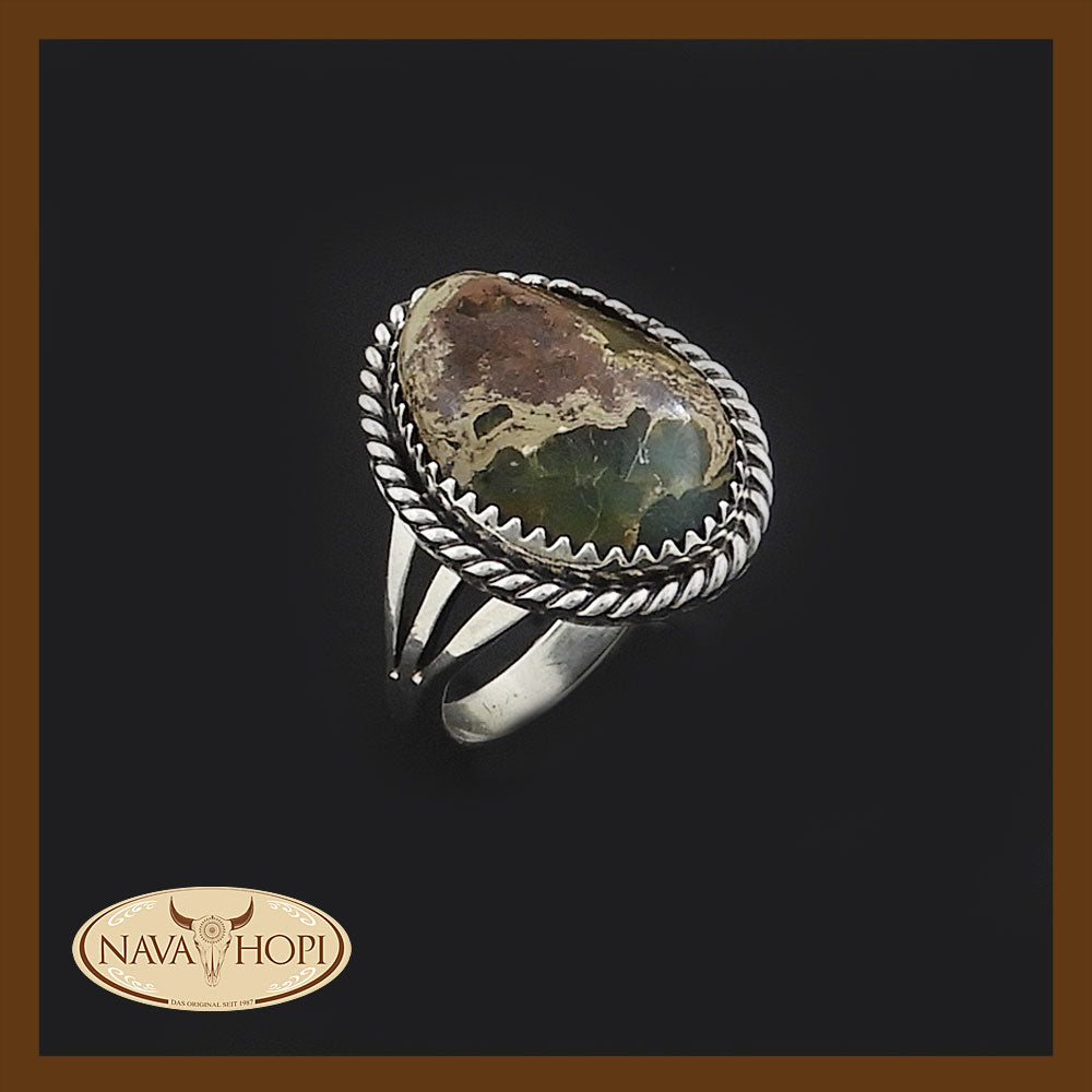 Navajo Damenring, Sterling Silber mit Leopardenjaspis, Stempelung H, Breite ca. 21mm