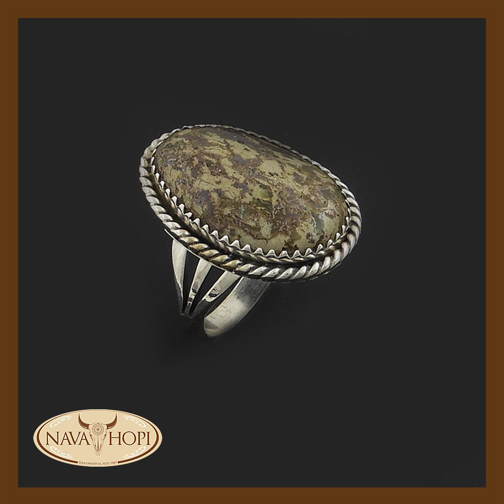 Navajo Damenring, Sterling Silber mit Leopardenjaspis, Stempelung H, Breite ca. 25mm