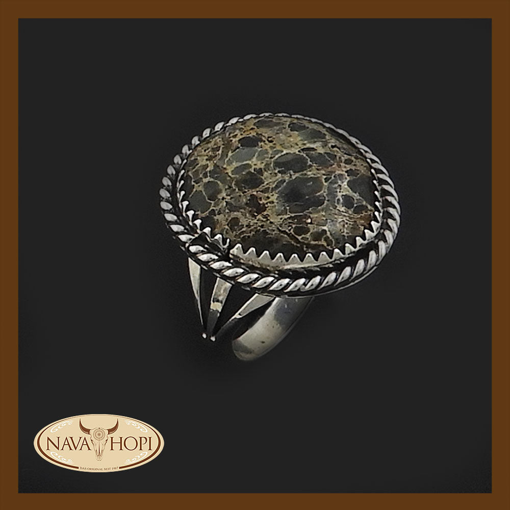 Navajo Damenring, Sterling Silber mit Leopardenjaspis, Stempelung H, Breite ca. 21mm