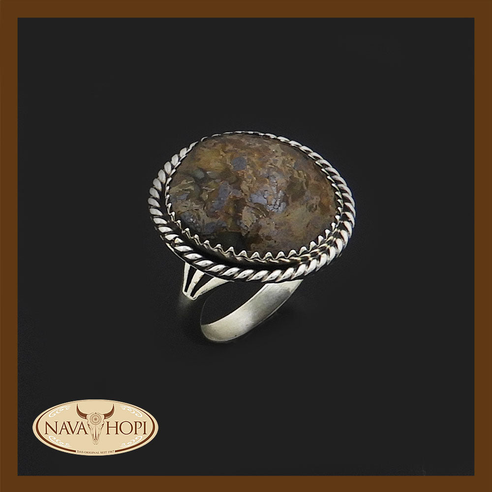 Navajo Damenring, Sterling Silber mit Leopardenjaspis, Stempelung H, Breite ca. 21mm