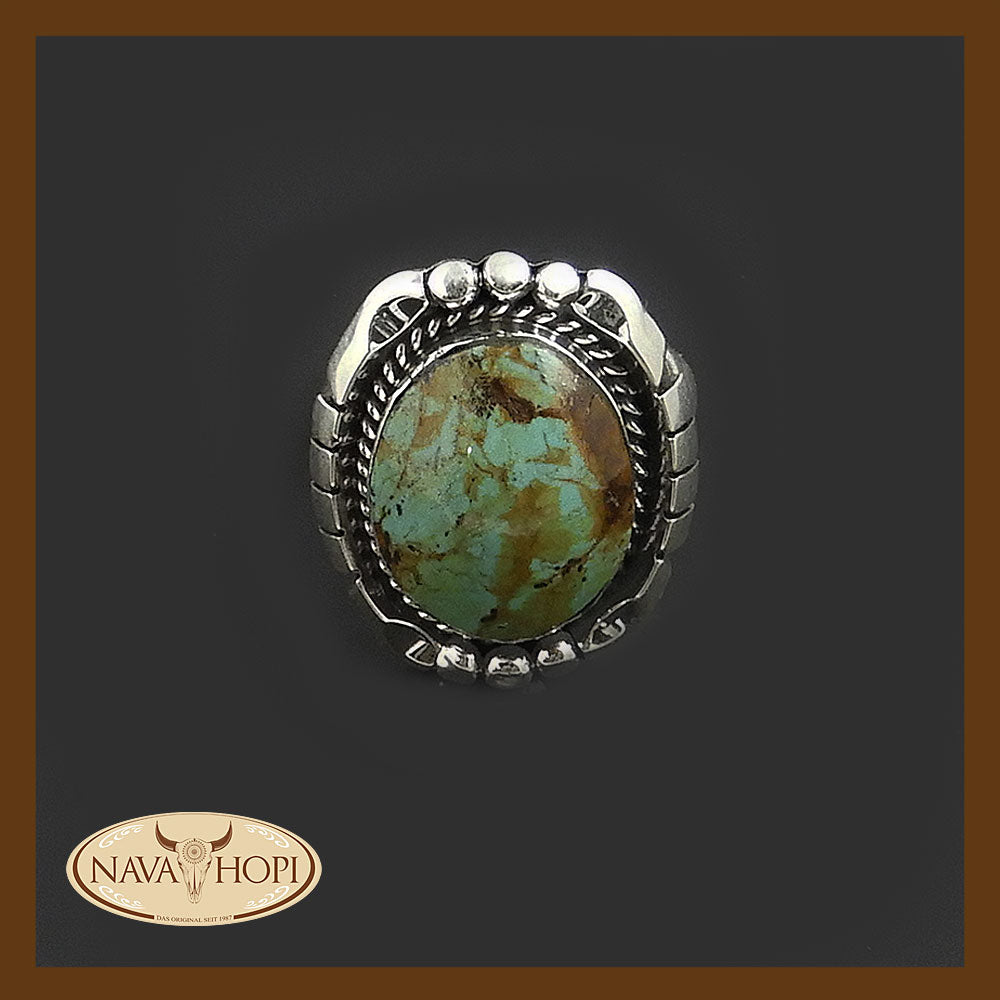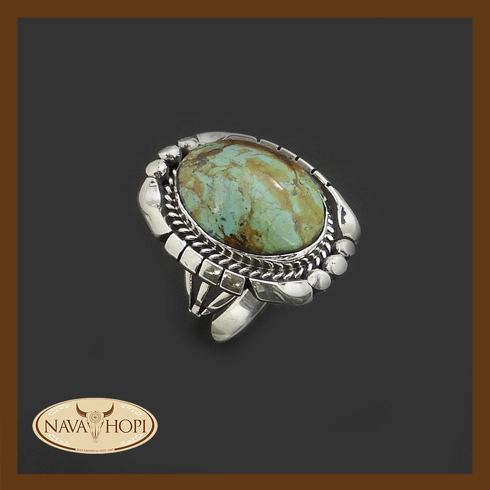 Navajo Damenring, Sterling Silber mit sehr schönem grünlichen Türkis Stein, Breite ca. 25mm