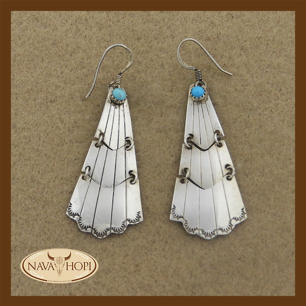Navajo Ohrhänger, Sterling Silber mit kleinem echtem Türkis Steinchen, Länge incl. Hänger ca. 56mm, Breite ca. 20mm