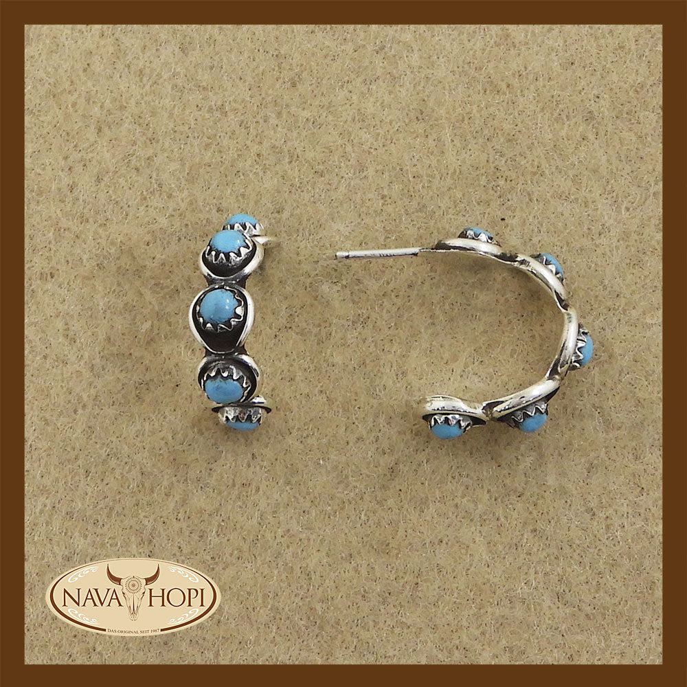 Halbcreole Türkis, Sterling Silber mit je fünf echten Türkis Steinchen, Durchmesser ca. 18mm