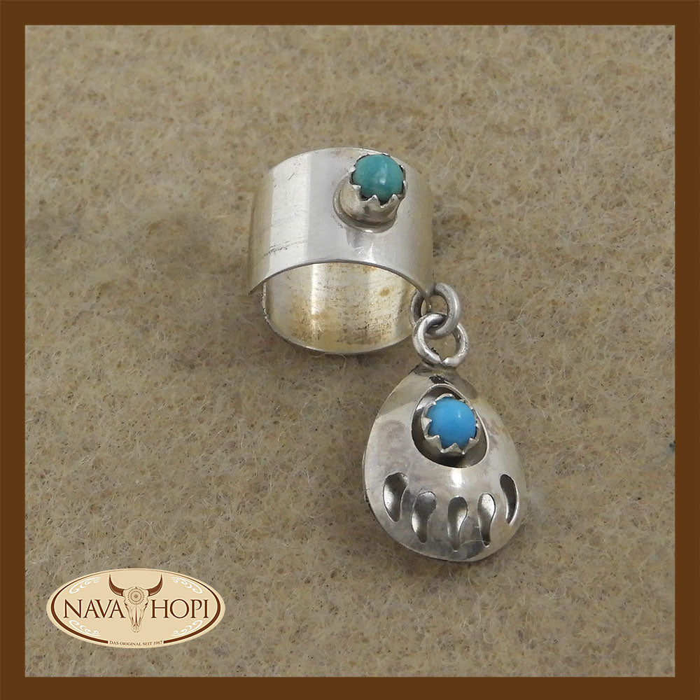 Ohrclip Bärentatze, Sterling Silber mit kleinen Türkis Steinchen, Länge ca. 20mm