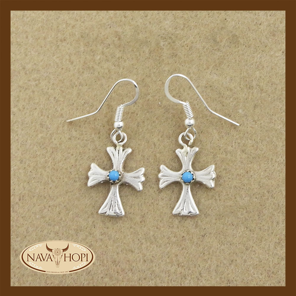 Navajo Ohrhänger Kreuz, Sterling Silber mit echtem Türkis Steinchen, Länge incl. Hänger ca. 38mm, Breite ca. 15mm