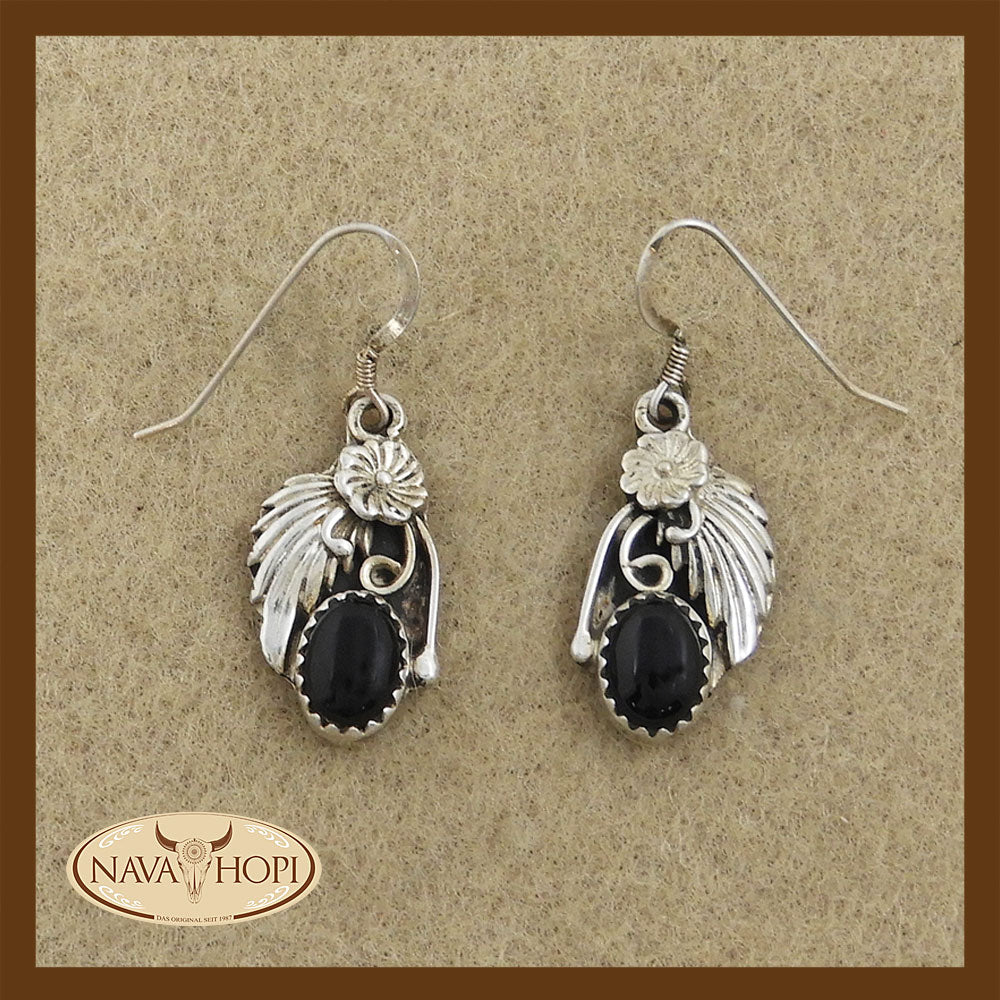 Navajo Ohrhänger, Sterling Silber mit Onyx, Länge incl. Hänger ca. 32mm, Breite ca. 11mm