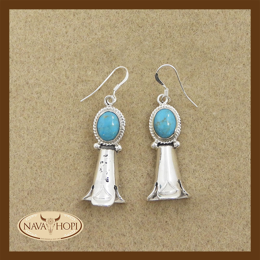 Ohrhänger Cherry Blossom von Navajo Künstlerin Sharon McCarthy, Sterling Silber mit echtem Türkis Stein, Länge incl. Hänger ca. 43mm, Breite ca. 13mm