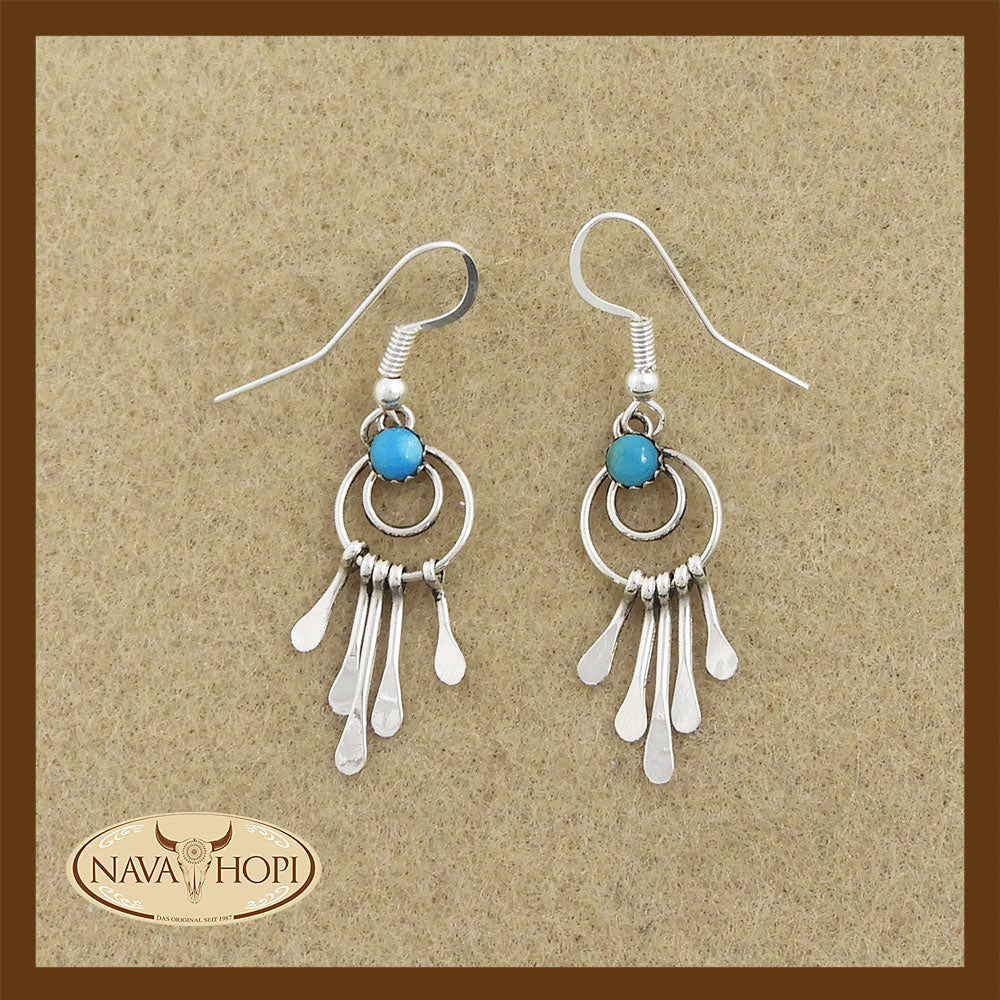 Navajo Ohrhänger, Sterling Silber mit echtem Türkis Steinchen, Länge incl. Hänger ca. 45mm, Breite ca. 11mm