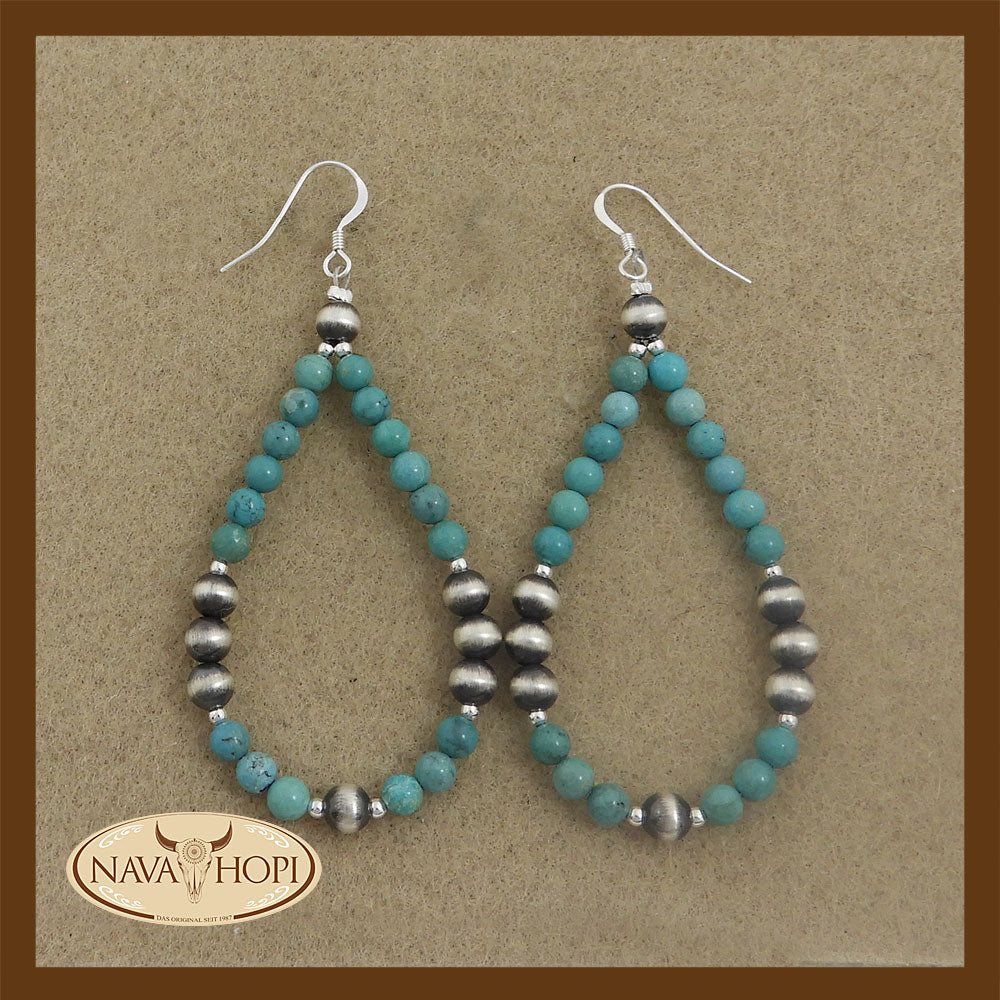 Ohrhänger von Navajo Künstlerin Louise Joe, Sterling Silber mit echten Türkis Kügelchen und Silber kugeln, Länge incl. Hänger ca. 73mm, Breite ca. 32mm
