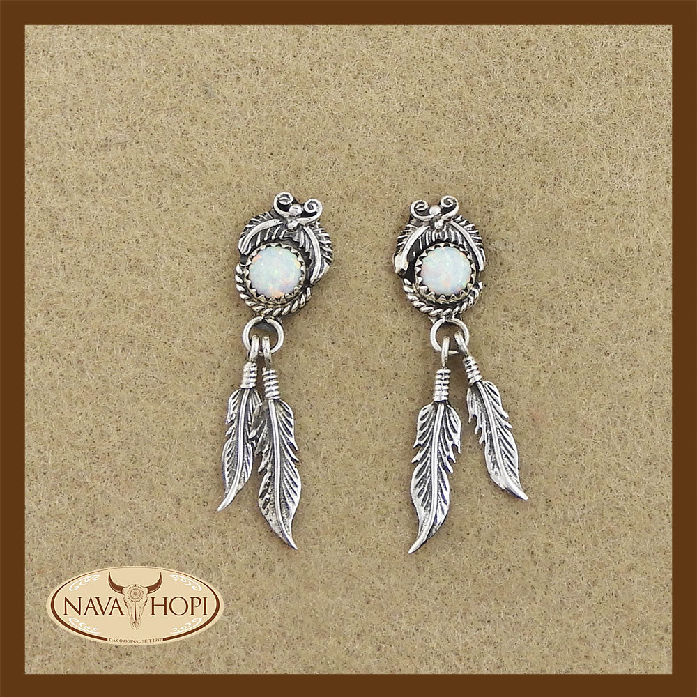 Ohrstecker von Navajo Künstlerin Rita Largo, Sterling Silber mit synthetischem Opal, Länge ca. 40mm, Breite ca. 10mm