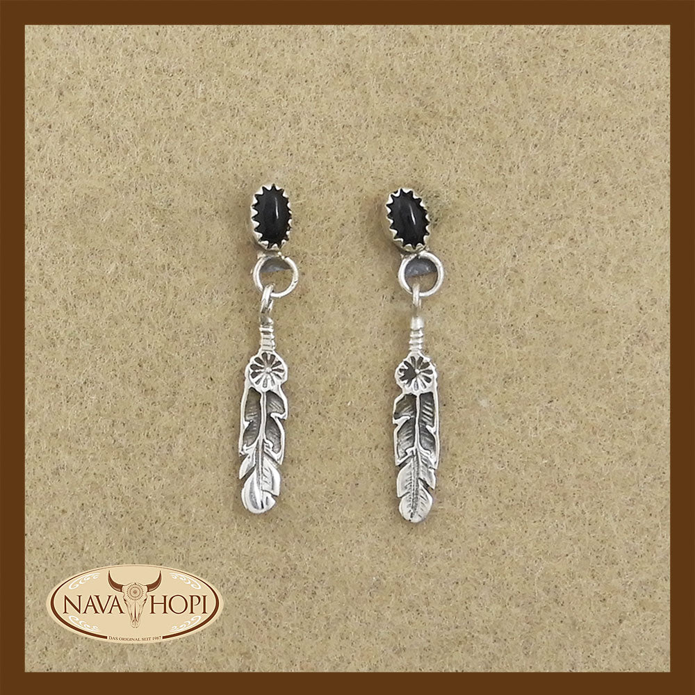 Ohrstecker von Navajo Künstlerin Letricia Largo, Sterling Silber mit Onyx, Länge ca. 35mm, Breite ca. 4mm