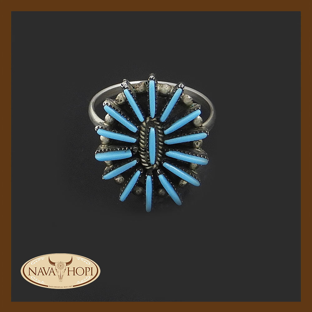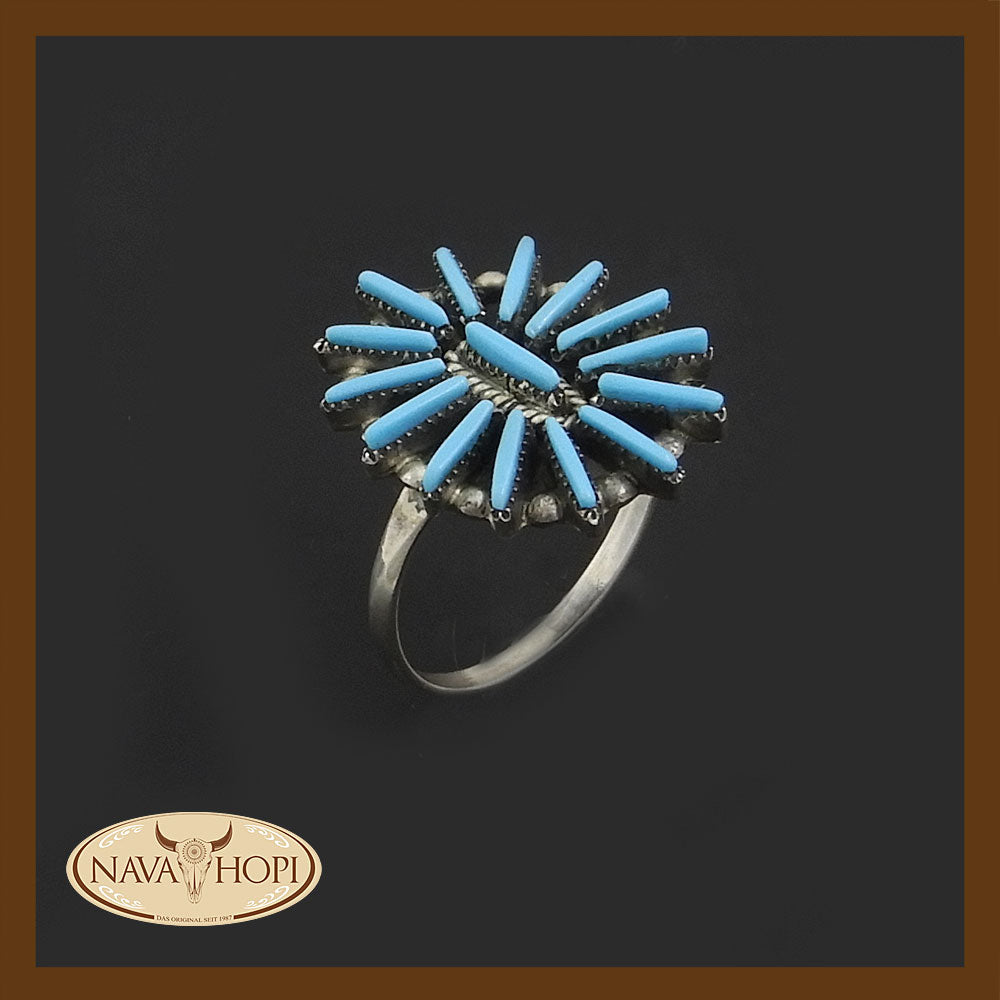 Zuni Damenring, Sterling Silber mit echter Türkis Einlage, Needlepoint Arbeit, Breite ca. 23mm
