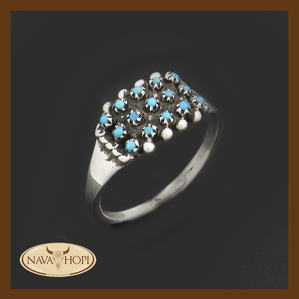 Zuni Damenring, Sterling Silber mit 15 kleinen Türkis Steinchen, Breite ca. 9mm