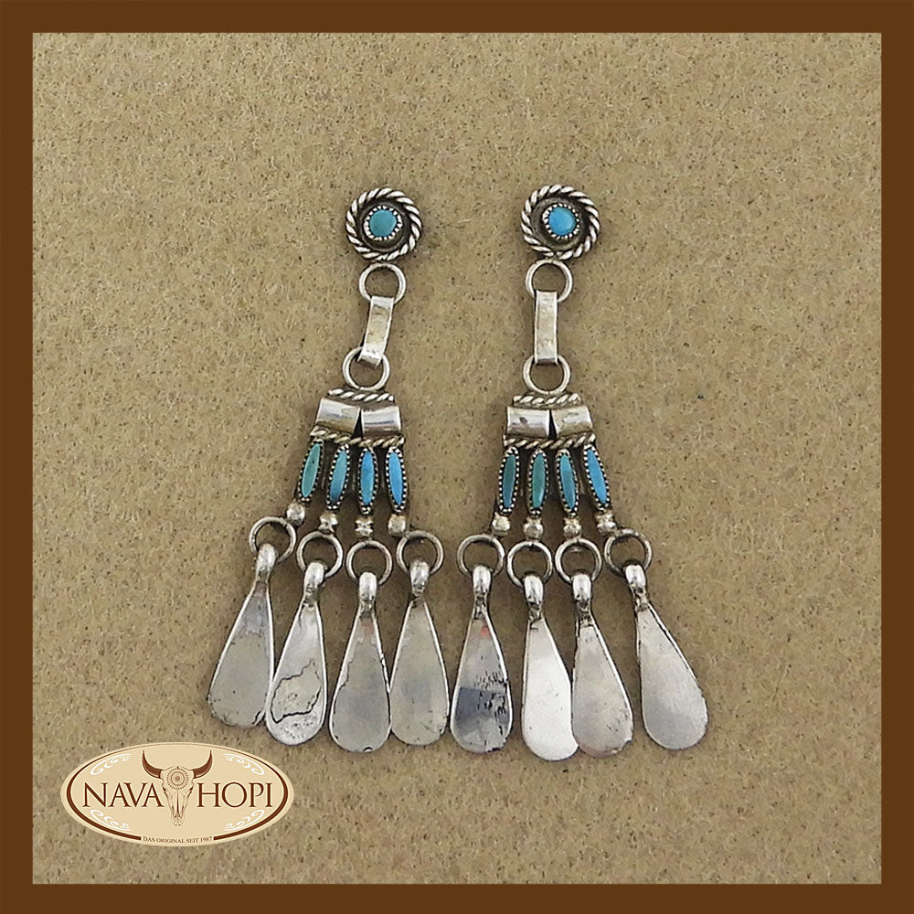 Zuni Ohrstecker, Sterling Silber mit echter Türkis Einlage, Länge ca. 60mm, Breite ca. 22mm